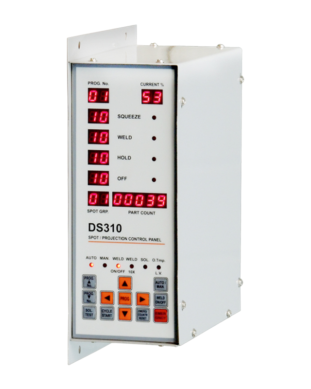 DS310 is higher model for general purpose spot and projection welding machines with counter for each program and 10x weld time configurable and thermostat connections for over-temperature safety.