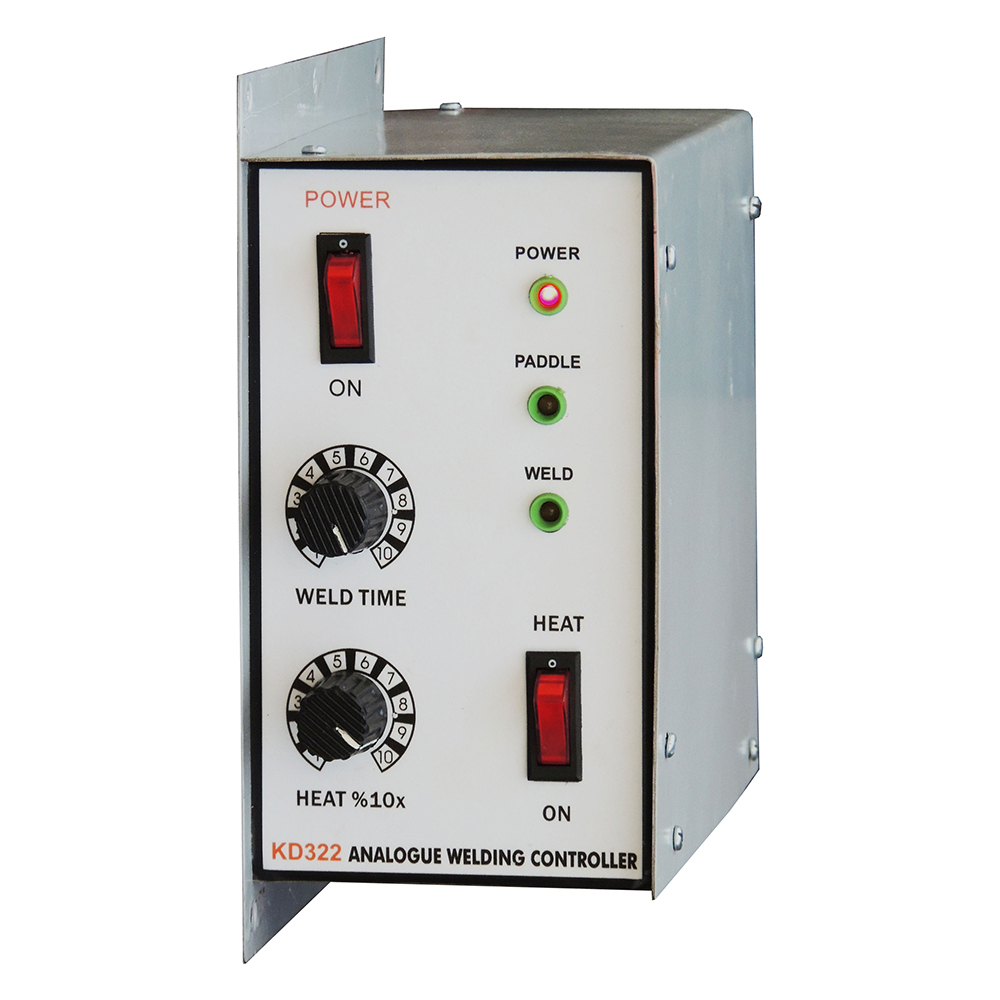 The KD322 spot welding controller is a Microcontroller based welding controller and is made for paddle operated Thyristor controlled machine. It has fast weld time and current setting through knobs. It has inbuilt firing circuit, hence need minimum wiring for fast installation
